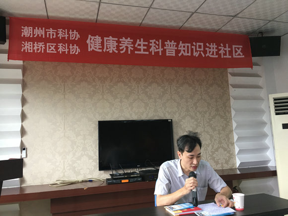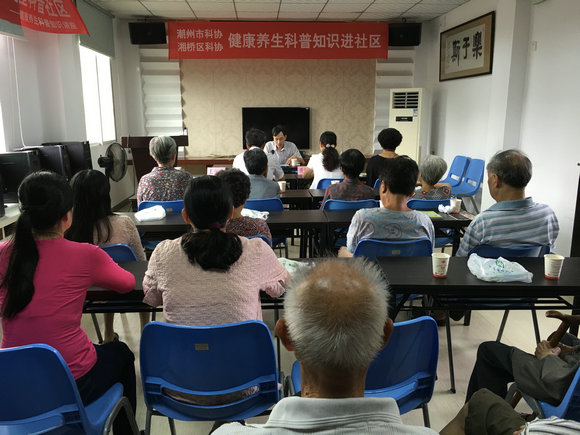 10月18日上午,由潮州市科协主办,湘桥区科协、太平街道南门社区居委会承办的健康养生科普进社区活动在南门社区居家养老服务中心举办,共有50多名社区居民参加了科普讲座,并观看了科普图片展和接受义医义诊。市科协副主席郑绍雄、科普部部长王少冲、湘桥区科协主席黄玲丽以及太平街道有关领导等参加本次活动。