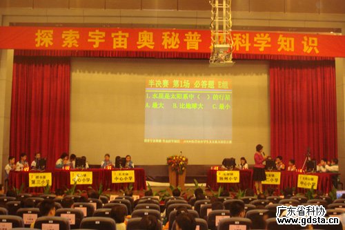 为了丰富校园科普活动的内容,推动东莞市小学生天文航天知识的普及,激发青少年学生探索宇宙奥秘的兴趣,引导学生了解科学、学习科学、热爱科学,由东莞市科学技术协会主办、东莞科学馆承办、广东天文学会和东莞市青少年科技教育协会协办的“2008年东莞市小学生天文航天知识竞赛”于11月13日在东莞科学馆举行,东莞市政协副主席、东莞市科协副主席邝明子,东莞市政协常委、科教文体和文史委员会主任丁林枝,东莞市科学技术博物馆、东莞科学馆以及东莞市科协、市青少年活动中心等有关领导和嘉宾出席了竞赛开幕仪式。