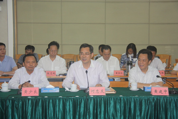 市委书记、市人大常委会主任何忠友首先介绍了河源市经济社会发展情况。向院士提出如何处理生态保护与经济发展、打造特色产业、打造产业园升级版和江东新区建设等问题。