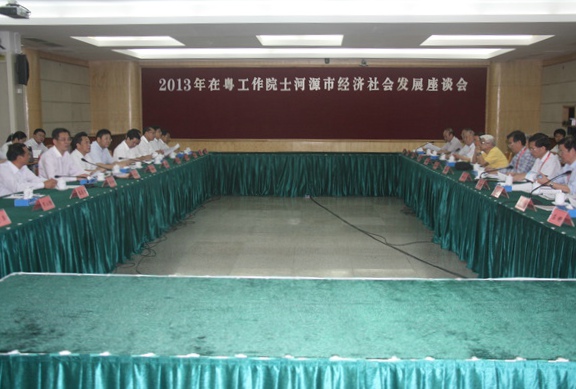 10月24日,河源市委、市政府在市会议中心召开在粤工作院士咨询座谈会。座谈会由河源市委副书记黄建中主持。参加2013在粤院士河源休养考察活动的院士,与河源市委、市人大、市政府领导,各县区主要领导,以及市直相关单位领导进行座谈。
