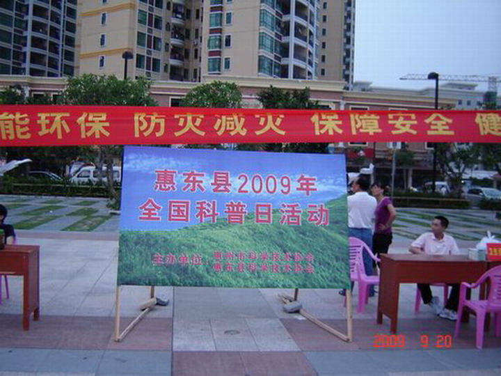 | 9月20日下午,惠东县2009年“全国科普日”大型宣传活动在惠东文化广场隆重举行。 今年惠东县“全国科普日”活动的主题是“节能环保、防震减灾、保障安全、健康生活”。 县科协从惠东经济社会发展和公众的现实需要出发,组织开展了一系列科普宣传活动,在全县广泛宣传节能、环保、安全健康等方面的科学观念、知识和方法,倡导建立资源节约型和环境友好型社会,形成科学、文明、健康的生活方式,受到了广大人民群众的热烈欢迎。 一、“全国科普日”系列活动期间,县科协在惠东县城多个社区和相关学校、村委会更换了“全国科普日”主题活动宣传栏,共更换挂图100余幅; 二、组织召开了惠东县2008~2009年度青少年科技创新表彰大会,并举行了青少年科技创新辅导讲座; 三、联合县农业局、农牧技术协会、农技推广中心等学(协)会开展了科技下乡活动,举办农村实用技术培训班多次,参加科技培训的农户达200多人次; 四、联合县电视台开展了“科普大篷车”电视宣传,引导广大居民崇尚科学、破除迷信,反对伪科学和邪教,在各社区、学校营造了科学文明的良好氛围。 五、开展大规模科普宣传活动。9月20日,县科协牵头,组织县科技局(地震局)、应急办、消防大队、交通局、卫生局、经贸局、工商局、药监局、烟草专卖局等单位在惠东文化广场开展了“节能环保、防震减灾、保障安全、健康生活”为主题的宣传活动。参加此次大型宣传活动的还有来自惠州市的多家企业,他们向群众展示了各类节能新产品。烟草局、药监局与经贸局等相关职能部门向群众介绍了假烟、假洒、假药等伪劣商品真假实物鉴别方法;卫生局组织多名医务人员为群众义诊,解答群众咨询2000多人次。本次现场宣传活动共展出展板20余块,宣传挂图200多张,发放宣传材料10000余份。达到了预期的目的。