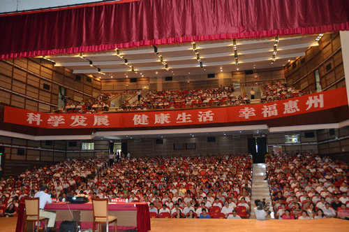 7月15日下午,由广东省惠州市委、市政府主办,市科协、市委保健办承办的惠州学习论坛•惠州科普讲学堂系列之钟南山院士“科学•健康•幸福”报告会在惠州市会议中心举行。中国工程院院士、广州呼吸疾病研究所所长钟南山应邀作报告。钟南山院士用生动而充满智慧的语言,深入浅出地剖析了现代人日常生活中的保健误区,并开出科学实用的“身心健康处方”。