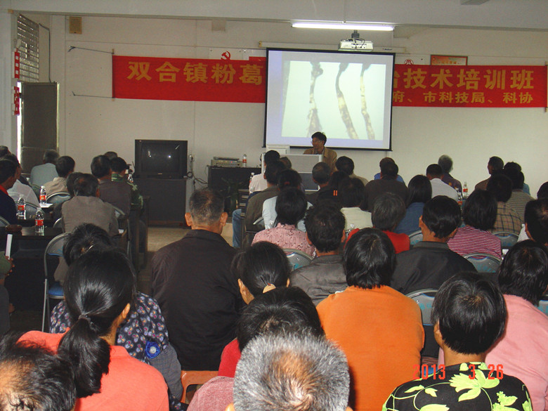 3月26日,江门市鹤山市科协联合鹤山市科技局等部门在镇农科中心举办粉葛根腐病防治技术培训。培训班邀请广东省生态环境与土壤研究所林兰稳研究员讲授《粉葛根腐病防治技术》专题讲座,为全镇以及近临乡镇的180多名种植粉葛专业户组织培训,深受群众欢迎。活动旨在进一步推动双合镇特色农业经济,大力发展广东省绿色产品粉葛生产。