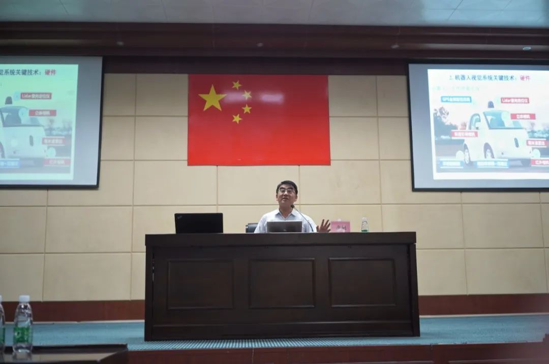 原魁教授为师生们上了一堂启迪智慧、脑洞大开的科普大课。报告讲解了为什么要研究机器人视觉,详细分析了机器人视觉系统的关键技术,并以智能型工业机器人、服务机器人、无人驾驶汽车等为实例向师生们介绍了机器人视觉系统的应用示例,展望了机器人视觉技术的发展趋势。报告会还进行了师生交流互动环节,现场气氛活跃,同学们踊跃提问,原教授耐心并细致地为师生解惑答疑。