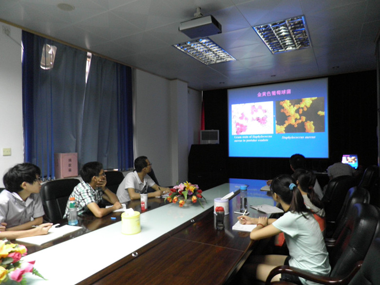 江门市畜牧兽医学会为进一步提升畜禽疾病诊断的技术和技能,更好地服务农村广大养殖户,于8月22日上午在市动物疫病预防控制中心会议室举办畜禽疫病诊断技术研讨会。学会会员单位代表、市直相关单位负责人等25人参加了研讨会。冯开容高级兽医师和关建新研究员分别从“望、闻、嗅、问、切、叩”等基本检查方法,讲述了常见动物疫病的主要发病特点、病理学形态诊断要点。参会人员围绕做好疫病诊疗技术的展开了研讨。