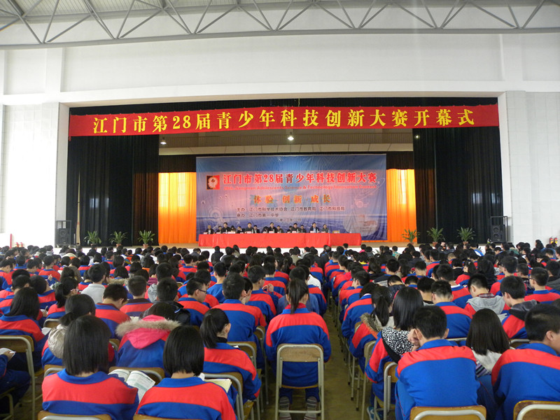 1月8日,第28届江门市青少年科技创新大赛在江门市第一中学隆重举行。江门市政协副主席、科协主席赵树培,江门市科技局党组成员、纪检组长符敦恩,江门市科协副主席张兴,江门市教育局政体科科长阮昌国,江门市第一中学校长华明海等领导出席了大赛开幕式,并亲临大赛活动现场,观摩了大赛作品,亲切地与参赛学生进行了互动交流。各市、区科协、教育局、科技局等相关领导以及江门市第一中学代表共1000多人参加开幕式活动。这是一场汇集了创新精神、创意梦想的青少年科技盛会。