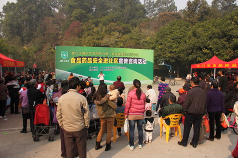 在临近春节之际,江门市药学会为提高社区群众的食品药品安全意识,推动食品药品安全宣传工作深入开展,联合江门市食品药品监管局、蓬江区环市街道办事处等单位,于1月3日在育德社区举办“食品药品安全进社区”宣传咨询活动。联合主办单位的领导和科技工作者近30多人向当地社区群众宣传食品药品安全知识,共有500多名群众参与活动。