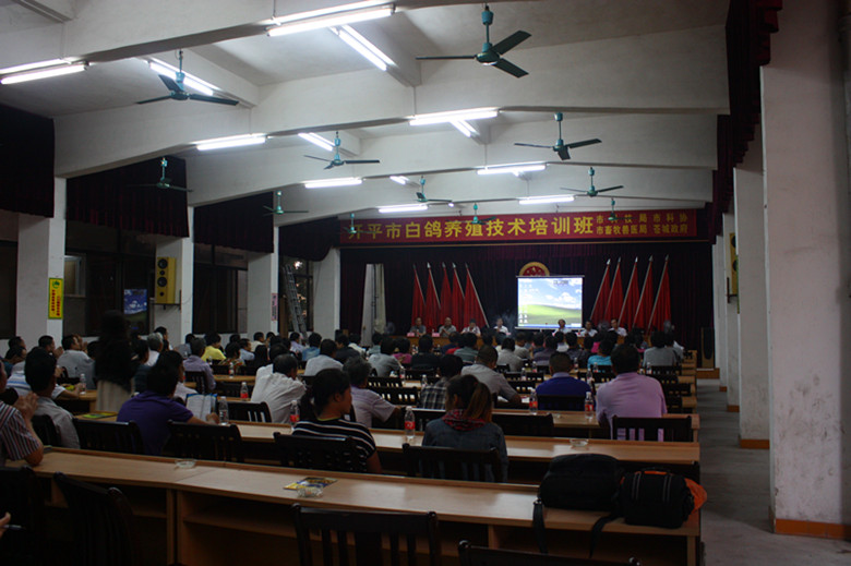 江门市开平市科协为把白鸽养殖打造成为苍城镇一个亮丽的农业品牌,针对苍城镇养鸽户较多,但养鸽水平较低的现状,于10月30日下午联合开平市科技局、市畜牧兽医局在苍城镇举办农村白鸽养殖专业技术培训班。邀请了省家禽科学研究所陈益填研究员作题为《肉鸽标准化养殖的关键技术》的专题讲座,吸引了来自苍城镇、马冈镇、龙胜镇和新会区的150多户白鸽养殖户参加。