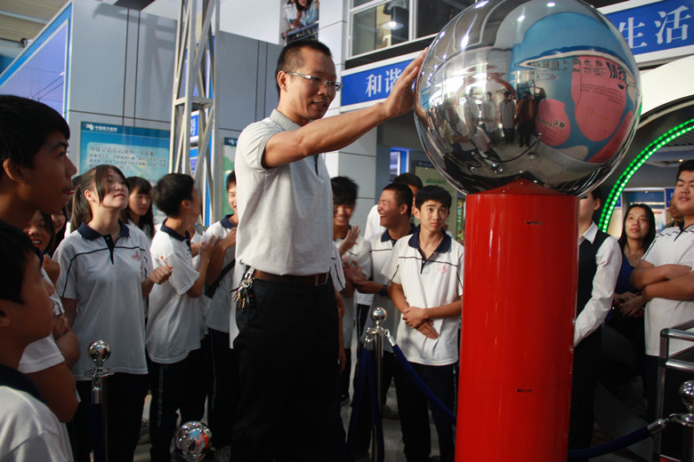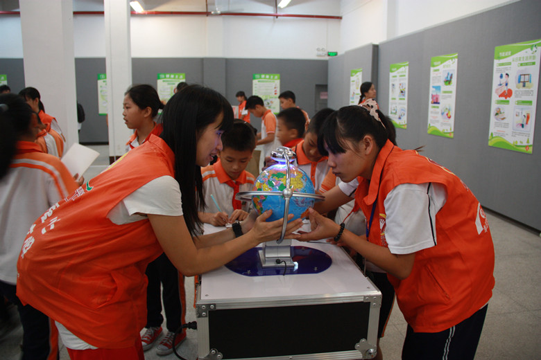 在科普志愿者的带领下,学校师生们看到了许多新颖独特的科技展品,体验到了科技的神奇魅力。馆场内通过参与、互动与体验,学习科学原理知识:地球仪是如何悬浮的?龙旋风是如何形成的?体验了人体速度反应的刺激……在玩乐中体验科学探究的无限乐趣。整个参观过程,学生们徜徉在科技的海洋,激发了他们对科学知识的探索兴趣。