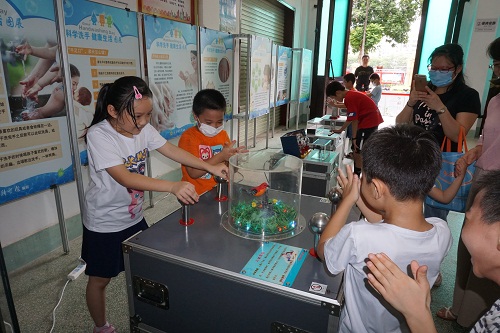 活动现场开设了科普体验、科普展览和科普宣传展位,形式丰富多彩。活动中,展出了“无皮鼓”、“时间反应测试”、“听话的小球”、“天鹅绒触觉”、“倒不完的啤酒”等30多件(套)的电磁类、力学类、古典数学益智类的科普互动展品,让前来参观的市民、科技爱好者们零距离体验科学。同时,主办单位还为市民赠送科普宣传资料和文具小礼品1万多份(册),向5千多人(次)普及科学知识;“科学洗手 健康生活”、“垃圾分类”、“预防溺水”、“交通安全”、“疫情防控”、“食品安全”等30幅主题科普挂图在现场进行展览。