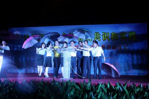 5月30日晚上,天空下着淅沥沥的小雨,但挡不住群众的热情,以“让创新成为全社会的共识和实践”为主题的茂名市2012年科技进步活动月启动仪式在化州市康景体育馆南门广场隆重举行,共有来自气象、医学、预防、养猪、香蕉生产者、无公害蔬菜等20多个市县两级的学(协)会、科普示范基地和100多名专家参加,吸引几千名市民参与。茂名市科协党组书记、主席蔡映秋,茂名市科协副主席朱健超,茂名市科技局党组成员、知识产权局局长陈军,化州市委常委、统战部长黄春梅,化州市政府副市长陆朝光等领导出席启动仪式,并共同推动启动仪。启动仪式由茂名市科协、茂名市科技局和化州市科协、科技局、气象局、团委、妇联等单位联合举办,茂名市科协党组成员、副主席黄少兰主持。