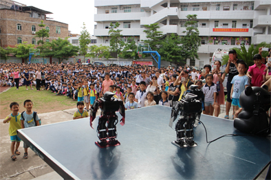 5月25—27日,广东科学馆科普大蓬车开进五华县水寨镇第一小学、河东镇第一小学。让山区的青少年体验了“平稳球”、“穿针引线”、“九连环”等车载展品,让参与者通过人机互动的科普游戏和科普知识拼图游戏,在动手动脑的过程中探究科学的奥妙;欣赏了先进的机器人表演,帮助青少年对机器人有比较直观的了解;观看了3D电影和球幕电影,帮助青少年提高对数码技术的认识,感受节目中的视听效果;观看了航模表演,由科技老师现场演示多种飞机和汽车模型,通过模型演示,提高青少年参与及动手学习的兴趣和能力。