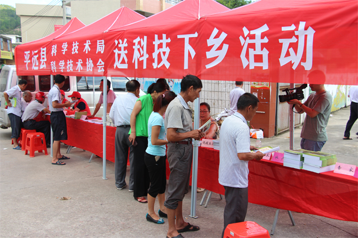 近日,平远县科协联合县科技局组织农业、医务等技术专家深入到仁居镇、中行镇开展送科技下乡活动,为当地的群众送上一道“科技套餐”。在活动现场,专家们热情耐心地解答了广大农民群众在农业种植、水产和畜牧业养殖中遇到的各种疑难问题、在医疗卫生保健方面的常识以及在防范自然灾害中要注意的问题,向农民朋友赠送了《南方洪涝灾害灾后防疫及生产自救指南》、《防震减灾科普知识》、《地震应急救护知识》、《急救科普知识》、《农村常见灾害科学防治手册》等宣传手册及一些《溪黄草栽培技术》、《识别农作物种子优劣技巧》等一大批科普宣传资料。这次活动,让科技成果惠及民众,促进农民增收。