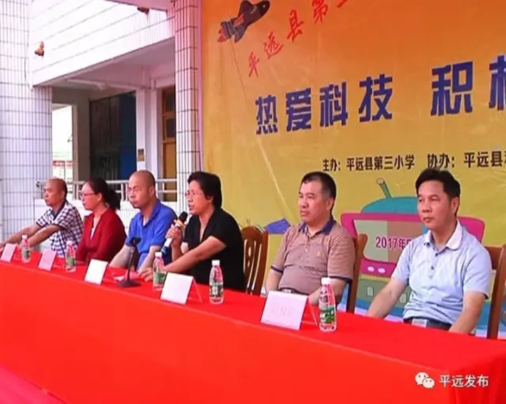 5月31日下午,平远县科协与平远县第三小学联合举办了以"热爱科技,积极创新"为主题的第二届校园科技节活动,县政府刘兰娇副县长、县科协杜永灵主席、县教育局潘昌洪副局长等领导以及全县各间小学校长、科技辅导员、部分特邀家长代表、县三小全体师生参加了开幕式。