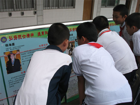 图为同学们认真阅读梅州籍28位院士的成长故事、科研成就。