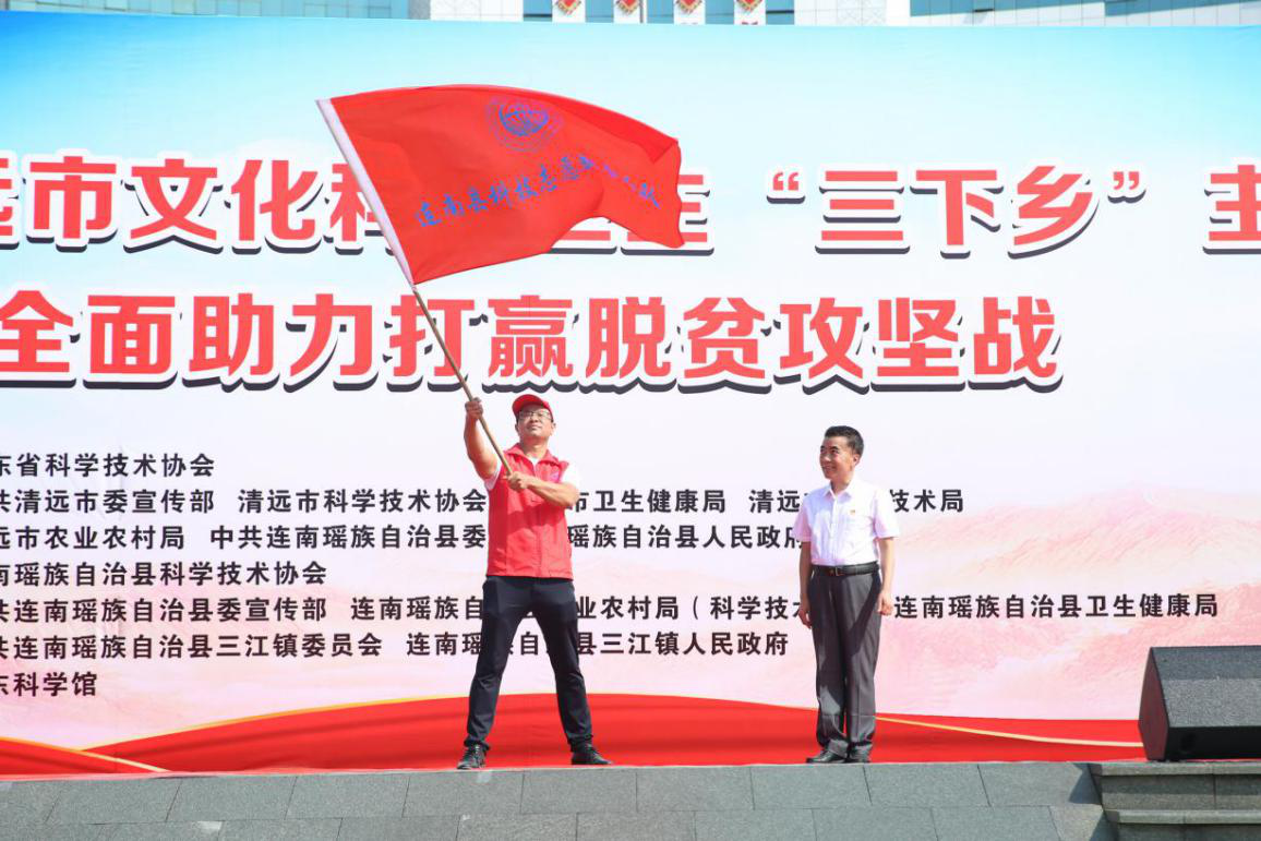 8月25日,2020年清远市文化科技卫生“三下乡”主场活动在连南县启动,仪式上清远市科协向连南县科技志愿服务分队授旗。省科协党组成员、副主席刘建军出席活动并致辞。