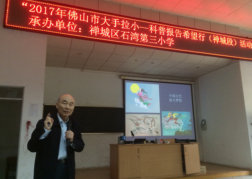 2017年2月27日-3月5日,佛山市禅城区科协联合佛山市科协、禅城区教育局邀请中国科学院老科学家科普演讲团在禅城区30所学校举办了30场“2017年佛山市大手拉小手——科普报告希望行(禅城段)活动”,受惠师生多达1.4万人。