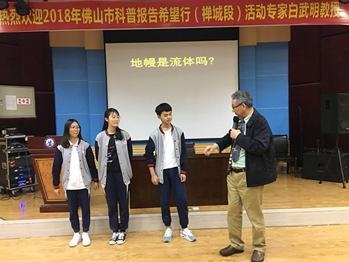 2018年3月15-16日,佛山市禅城区科协联合佛山市科协、佛山市禅城区教育局邀请中国科学院老科学家科普演讲团在禅城区31所大中小学举办了33场“2018年大手拉小手——佛山市科普报告希望行(禅城段)活动”,约1.6万人次师生享受了这次的科普大餐。