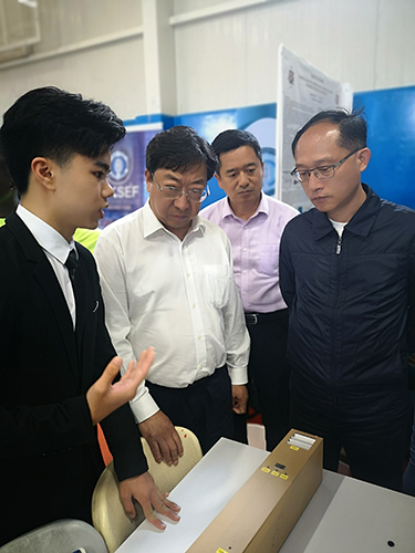 6月13日,中国科协党组副书记、副主席、书记处书记徐延豪出席大赛开幕式,看望中国4名参赛选手,到比赛现场认真聆听了李柱霖同学介绍参赛作品,并与大家亲切交流,为大家加油鼓劲。