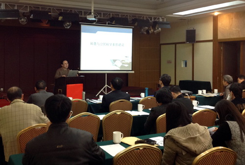 省学会研究会常务理事郑德胜作专题报告(汪元龙 摄)