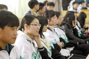 3月5日,佛山三水实验中学学生认真听陈钰教授的讲座