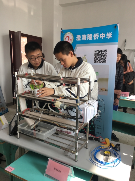 澄海区的参赛作品中,城北小学赵植毅、实验小学王润宇合作设计的《基于物联网的可穿戴式空气质量监测系统》,实验小学许子涵、陈林勃合作设计的《具有存放与自动跟踪功能的太阳能充电器》,这二件科技创新成果获一等奖并被推荐参加省赛;澄海中学林子开、蔡炼、张宇冲合作设计的《盲人拐杖》,实验学校王淋庆、余逸楠、唐跃然合作设计的《基于物联网的太阳能自动跟随发电系统》,这二件科技创新成果也获得一等奖;莲下中心小学刘泳杉的《大气资源收集机》、澄海道南小学曾斯奥的《城市的清洁工》、澄海华侨小学麦心琳的《未来世界的智能家居》等13件科幻画作品获得一等奖并被推荐参加省赛。