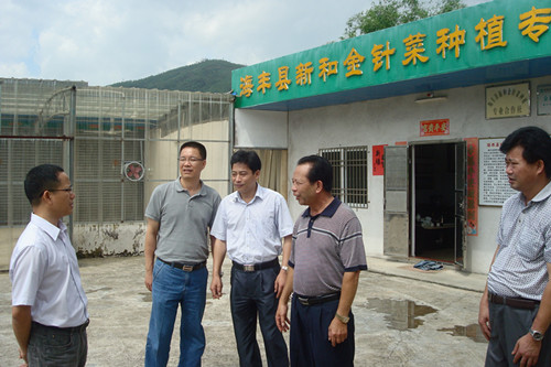 6月27日,汕尾市海丰县副县长符坚在县科协、科技局相关负责同志的陪同下,到黄羌镇新和金针菜科普示范基地调研。