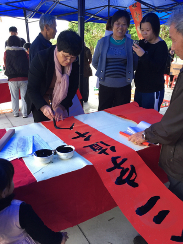 在现场,活动组织的书法家们挥毫泼墨,不辞辛苦,从早晨一直创作到中午,用多种字体书写春联近200幅赠予村民;市第二人民医院(逸辉基金医院)的卫生医护人员为村民提供免费医务咨询和义诊,服务近200人;市科协为村民发放了《公众日常科技知识读本》和《新时期农村基层工作科技知识手册》等书籍400本和保健品一批。此次文化科技卫生集中服务活动,深受村民欢迎。为推动农村精神文明建设,提高农民科学文化素质、健康素质,建设美丽宜居乡村提供了强大的精神力量,也为下一步精准扶贫和创文工作的顺利推进打下了良好的群众基础。