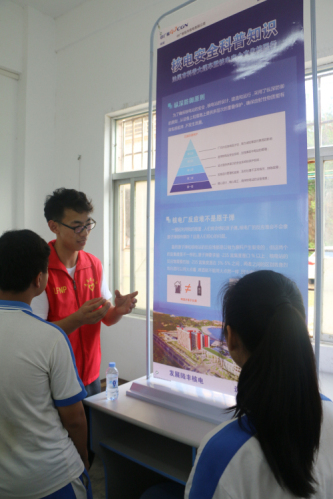 启动仪式结束后,在汕尾市科协和陆丰核电有限公司发放科普书籍专区前瞬间挤满学生,同学们争相领取了科普书籍并融入到知识的海洋里。由汕尾市科技馆和陆丰核电有限公司摆放的科普大篷车车载展品、展板专区,同学们对VR体验、健康生活、视觉体验、电磁与材料、机械传动、运动与力等科普内容迅速充满好奇。在每部科普设备前都是人头攒动,这些科普展品能将科学原理、科学现象直观地展现在同学们面前,让同学们亲身体验到科技的神奇,感受到科学带来的快乐和进步。而在展板面前,不时有学生询问核电科普志愿者关于核电安全和原理方面的疑虑和知识。