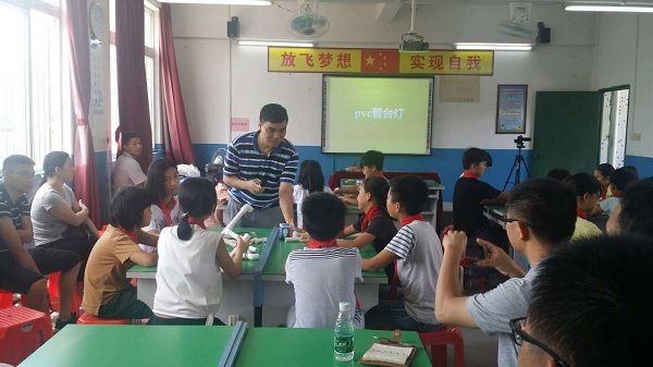 活动首先带来两节STEM优质课展示,分别是由石城中心小学科技教师团队研发的STEM校本课程《PVC管台灯》和《搭建一个稳固的结构》。在《PVC管台灯》课堂上,教师给学生提供锯子、PVC管、电线、灯泡等材料,学生们发挥想象力,大胆探究,拼出各种造型的台灯,并点亮了灯泡。随后举行“STEM教育培训会”,培训从了解STEM及创新人才培养,到如何进行STEM课程设计,作了全面细致的阐述。课后,学员畅谈了课堂学习中的体会与收获,并结合自身工作和对项目的理解,与培训老师进行了互动。