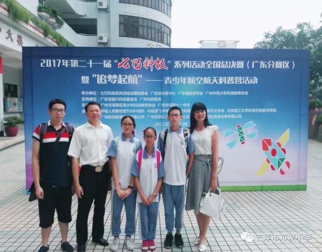 7月12日至15日,云浮市邓发小学七巧板参赛代表队代表云浮市参加2017年第二十一届“七巧科技”系列活动全国总决赛(广东分赛区)荣获高年级组“一等奖”以及“优秀组织奖”。廖木娇、赖紫健两位老师荣获“优秀辅导员”称号。