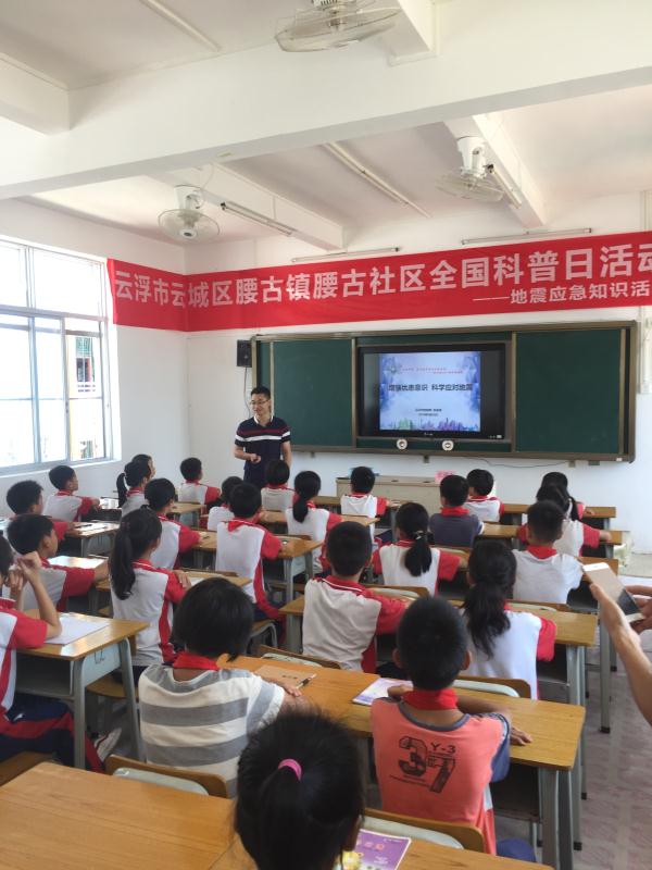 在腰古中心校开展的防震减灾宣传讲座和地震应急避险演练活动中,市地震局游波涛工程师向学校的300多名师生们讲授了防震减灾科普知识和地震应急自救互救技能,提高防震减灾意识,课后,师生们还参与了地震应急避险演练活动。