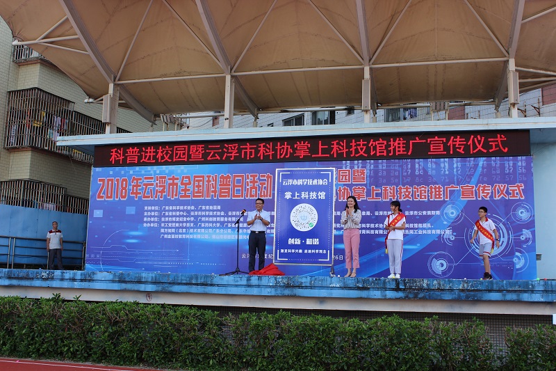 启动仪式由市科协副主席陈华坚主持。邓发纪念中学校长欧泽昌致欢迎辞,市科技局局长黄小涧、市科协主席戴志杰共同为云浮市科协掌上科技馆开启揭幕,最后陈华坚副主席宣布2018年云浮市全国科普日活动——科普进校园活动启动。