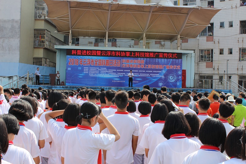 9月26日,云浮市科协联合省科普中心、市委宣传部、市教育局、市科技局、市经信局、市气象局、市地震局、市公安消防局等单位在邓发纪念中学举办2018年云浮市全国科普日活动——科普进校园暨云浮市科协掌上科技馆推广宣传仪式。各主办、承办、协办单位和云浮市全民科学素质工作领导小组成员单位的负责同志,邀请省的科技教育专家、科普志愿者,新闻媒体记者,邓发纪念中学的师生共1500多人出席了活动的启动仪式。