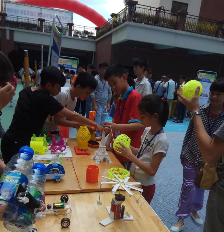 活动中,石城镇中心小学、高村镇清水小学、云安中学、白石中学、石城中学、富林中学、茶洞中学、华立中英文学校各派出师生创客团队亮相嘉年华活动。校园足球机器人、DIY机器人、轮足机器人比赛、无人车、3D打印、激光切割、无人机、自制航模飞机和各式各样的创意编程作品,活动内容新颖,充分展示出各校的创客教育成果,让孩子们深深感受到了创客的神奇与快乐。