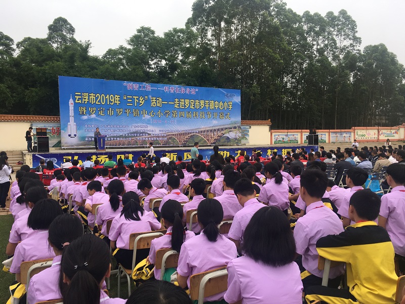 2019年4月17日上午,云浮市科协联合广东省青少年科技中心(广东省科普中心)、云浮市科技局、云浮市教育局,罗定市科协、科技局、教育局等单位,在罗定市罗平镇中心小学举办了云浮市2019年“三下乡”活动——走进罗定市罗平镇中心小学暨罗定市罗平镇中心小学第四届科技节开幕式。各主办、承办和协办单位的分管领导和有关部门负责人、省科教专家,以及新闻媒体记者,罗定市部分中小学校的科技老师,罗平中心小学全体师生及部分学生家长共2000多人参加了该次活动。