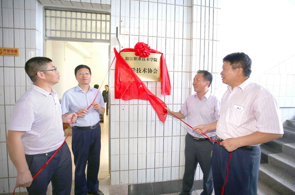 最后,阳江市科协与学院领导共同为阳江职业技术学院科学技术协会揭牌,并与参会人员合影留念。
