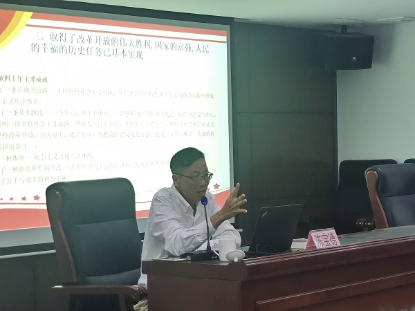 宣讲会上,陈宝德以“历史选择了中国共产党”为主题,围绕中国共产党诞生是历史发展的必然结果、中国共产党的成立是历史发展的必然结果、中国共产党已经完成和正在完成历史使命、正确对待党的历史挫折、坚持中国特色社会主义道路是中国历史发展的必然选择等5个方面作了一场内容丰富、精彩生动的报告。他用大量生动而经典的人物故事和党史案例,使听者更加全面、深入地了解中国共产党百年奋斗的光辉历程和历史性贡献。通过宣讲报告,进一步加深了科协系统干部职工对开展党史学习教育的重大意义和丰富内涵的理解认识,加深了对中国共产党百年奋斗的光辉历程和历史性成就的了解,加强了对党史学习教育重点的把握。
