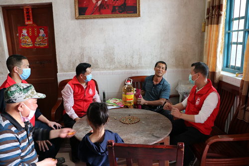 调研活动结束后,余飞兴、吴洪等同志在水月村开展“学雷锋”关爱困难群体志愿服务活动,慰问巫五金、陈信荣两户困难户代表。