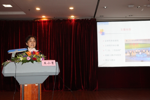 研讨班上发言的专家,都是我省第26届创新大赛的资深评委,他们均有多年的评审工作经验,在暑假期间组委会还特意组织他们亲临内蒙古自治区呼和浩特市全国大赛的现场观摩了解全国赛的最新动态。研讨班上,他们结合本届大赛的评审结果,加上自己多年的工作体会进行有针对性地授课。其中,广州机械科学研究院总工程师陈雪梅教授作了《科技创新思维及活动》专题报告,中山大学测试中心主任栾天罡教授作了《环境和化学领域青少年科技创新活动的进展》的专题报告,华南师范大学生命科学学院王小菁教授作了《关于指导开展小学生科技创新教育活动的体会和建议》的专题报告,广州大学生命科学学院王正询教授谈了《第26届全国青少年创新大赛观后感》,华南师范大学原物理系吴紫标教授作了《启发和联想》的专题报告,中共广东省委党校方真教授就《关于做好社会科学研究的几点体会》作了专题发言。
