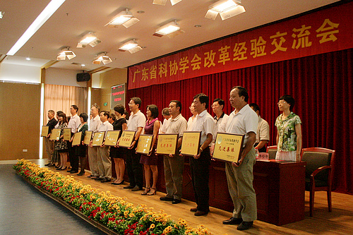 会议向省地球物理学会等12个第三批创新发展试点学会颁发了牌匾,正式启动第三批省级学会创新发展试点工作;对2008~2009年度广东省光学学会等25个先进集体和万为人等89名先进工作者进行表彰;省消防协会等7个学会代表分别作了经验介绍。