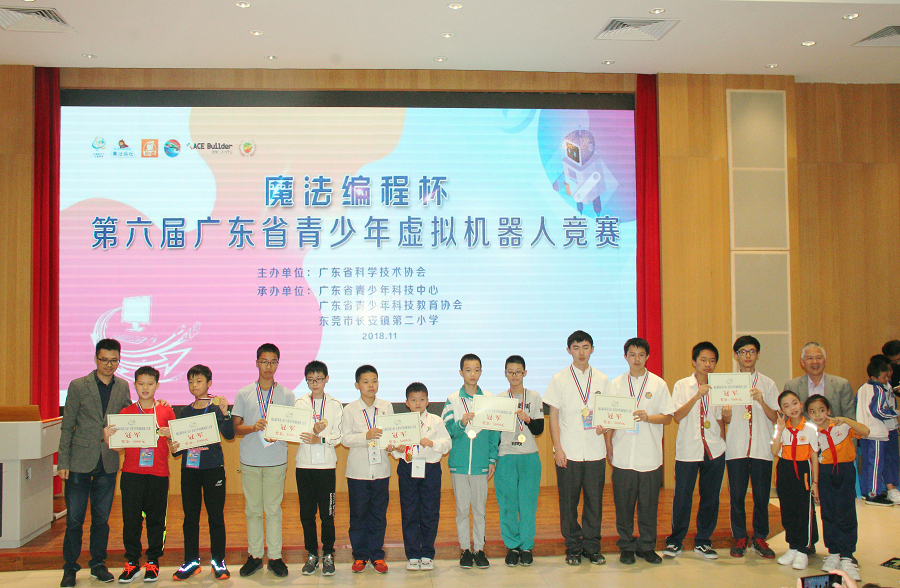 11月16-17日,由省科协主办的魔法编程杯第六届广东省青少年虚拟机器人竞赛现场总决赛在东莞市长安镇第二小学成功举行。省科协党组成员、副主席吴焕泉;省科协原副巡视员黄善辉;东莞市科协副主席许为豪;省青少年科技中心主任叶新鹏;东莞市教育局教研室主任王健;长安镇教育局局长陈柱基等领导嘉宾参加颁奖典礼。