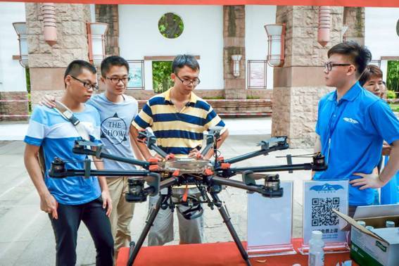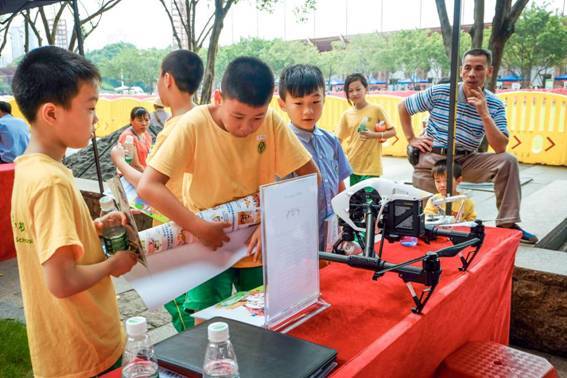 参加科普活动的小朋友对能飞航空展示的无人机进行仔细的观摩,并积极提出问题,表现出对无人机极大的兴趣。