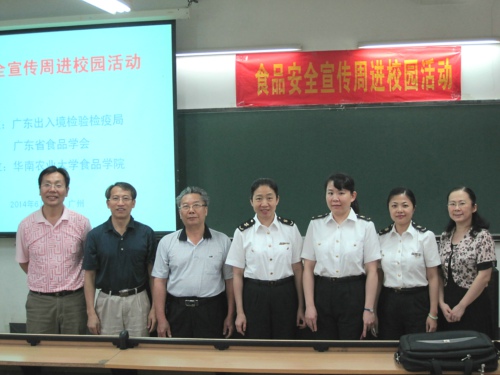 6月13日,由广东出入境检验检疫局、广东省食品学会联合主办,华南农业大学食品学院协办的“食品安全宣传周进大学校园活动”在华南农业大学食品学院举办。有来自多间大专院校的师生和广州地区的企业代表共160多人参加活动。