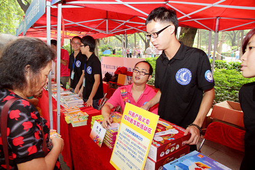 广东省2012年“全国科普日”活动主场活动启动,仪式上进行了社区科普益民计划先进单位授牌、科普志愿者授旗、食品行业代表发布倡议书等环节内容。(刘雷 张炜哲 摄)