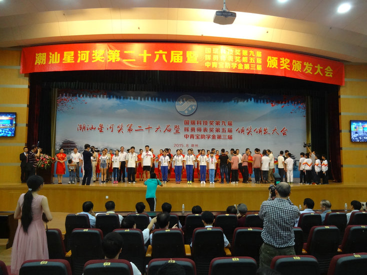 2015年8月20日下午,第26届潮汕星河奖暨第9届星河国瑞科技奖、第5届星河辉勇师表奖、第3届星河中青宝助学金颁奖颁发大会在潮州举行。潮汕三市190名优秀青少年和49个先进集体喜摘“品德、学业、科技、文艺、体育”五项星河大奖,有21名优秀科技工作者勇夺国瑞科技奖,44名优秀教师荣获辉勇师表奖,96学子获得潮汕星河中青宝助学金。