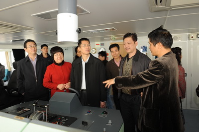 广州市海珠区科协组织科普工作者参观我国目前最先进的第一艘小水线面双体综合科学考察船“实验1”号。(海珠区科协 摄)
