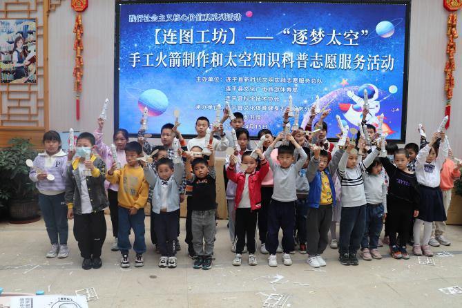 为进一步加强未成年人思想道德建设,拓宽广大青少年的科学视野,培养青少年勤动手、善动脑、爱科学、乐创造的科学素养和实践能力,4月17日,河源市连平县科协联合县文广旅体局和县新时代文明实践志愿服务总队在连平县科普教育基地——县图书馆开展了太空知识科普及相关手工制作活动。