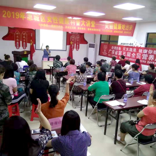 为倡导健康生活理念,促进女性科学素质和健康素养双提升,由惠州市惠城区科协、区妇联联合主办,惠州市营养学会协办的女性健康科普大讲堂活动近日圆满结束。本次活动以“女性健康 科普引领”为主题,于5-6月在各镇、街道、巾帼创业创新协会等“两新”组织共举办16场形式多样的健康讲座。惠州市营养学会曾晓辉、徐小敏、何慧芬、曾庆坤、谢继祥等理事,以及72人次的营养科普志愿者参加活动。通过现场授课、咨询与互动的方式,为近2000名女性提供膳食营养指导方案、科学养生建议、合理运动方案等,发放健康手册、全民营养周宣传资料3000多份。