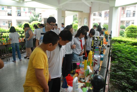 活动中,师生们的小发明、小创造精彩纷呈,有车载红绿灯、车库停车位空位置器、“马鞍式”折叠书包、照明笔到淋浴防煤气泄漏漏电开关、厨房防油爆面罩锅铲……一件件设计新颖、造型别致的科技作品引起师生、家长及其他观摩人员极大的兴趣。